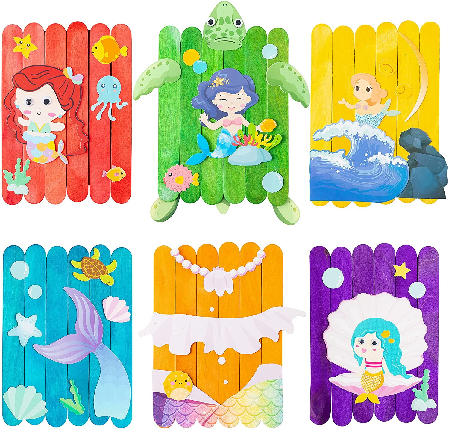 Toyhub 6 Packs Of Mermaid Wooden Stick Craft Paint Your Own Mermaid Diy Art Project Colored Popsicle Sticks With Mermaid Cut Outs Party Favors Decorations Classroom Art Supplies For Kids Girls Walmart Com